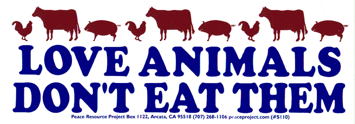Everyday Actions: You can be an effective animal advocate everyday—wherever you go—by wearing T-shirts, pins and adding a bumper sticker to your car. A variety of animal welfare and vegan organizations offer great T-shirts and sweatshirts for sale with good graphics and messages. These can be good conversation starters wherever you go, too. To be even more effective, carry literature with you so you can follow up a good conversation with some information that the person can read later.